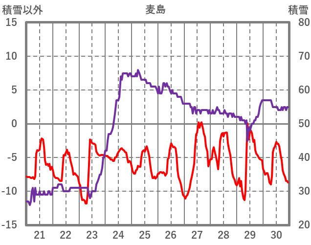 | 日 | 時 | 気温 | 降水 | 風向/風速 | 日照 | 積雪 | 降雪 |