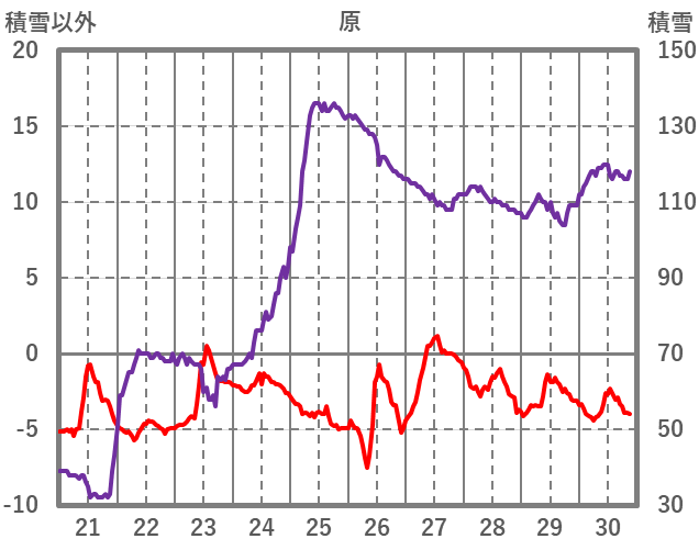 | 日 | 時 | 気温 | 降水 | 風向/風速 | 日照 | 積雪 | 降雪 |