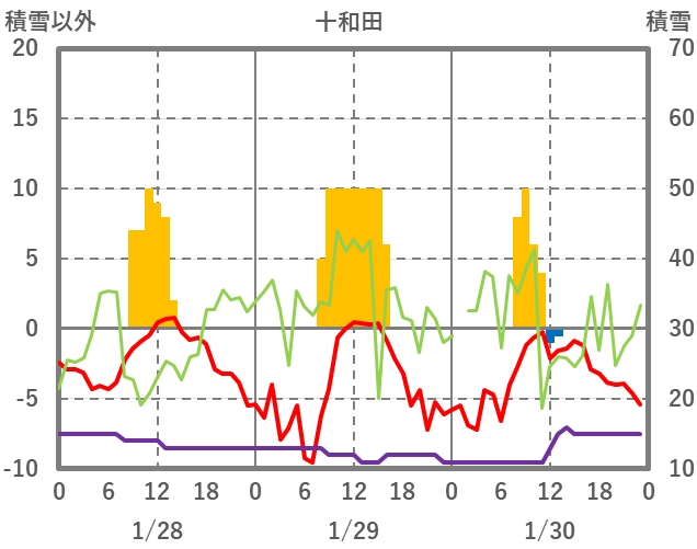 | 日 | 時 | 気温 | 降水 | 風向/風速 | 日照 | 積雪 | 降雪 |
