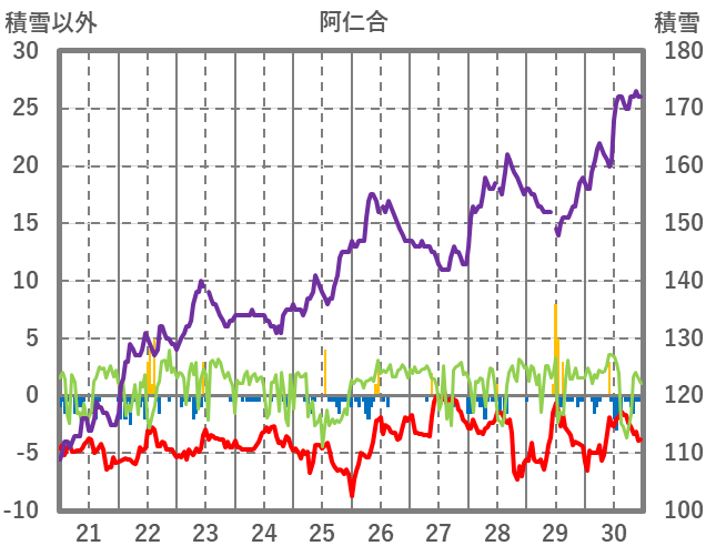 | 日 | 時 | 気温 | 降水 | 風向/風速 | 日照 | 積雪 | 降雪 |