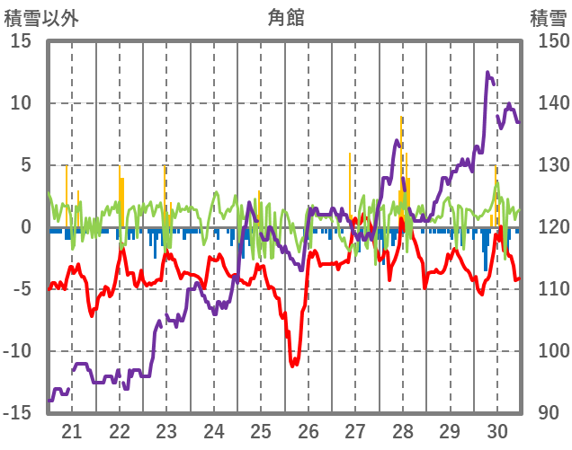 | 日 | 時 | 気温 | 降水 | 風向/風速 | 日照 | 積雪 | 降雪 |