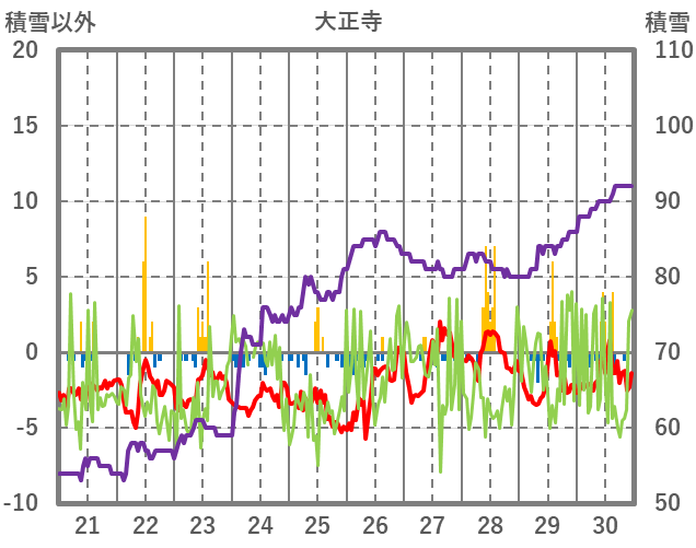 | 日 | 時 | 気温 | 降水 | 風向/風速 | 日照 | 積雪 | 降雪 |