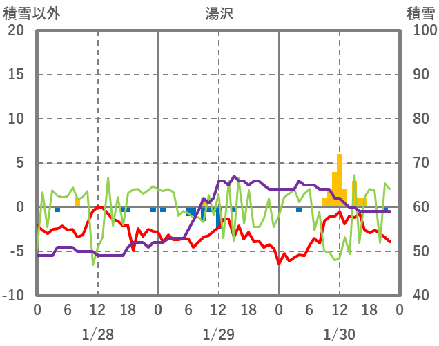 | 日 | 時 | 気温 | 降水 | 風向/風速 | 日照 | 積雪 | 降雪 |