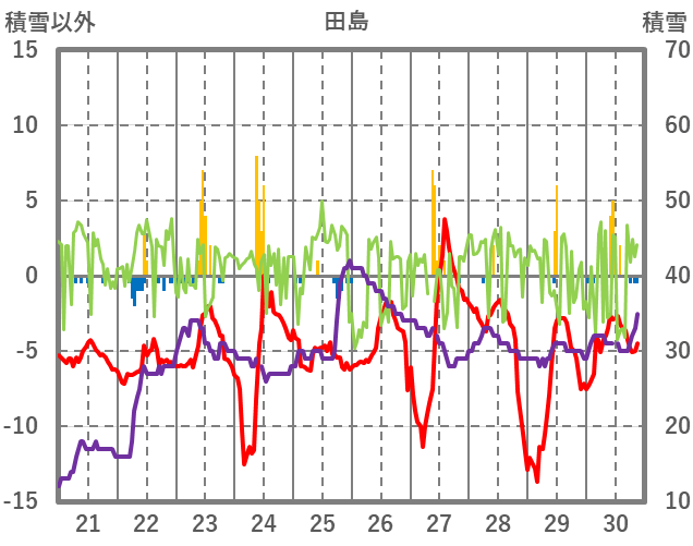 | 日 | 時 | 気温 | 降水 | 風向/風速 | 日照 | 積雪 | 降雪 |