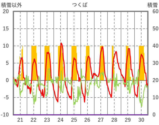 | 日 | 時 | 気温 | 降水 | 風向/風速 | 日照 | 積雪 | 降雪 |