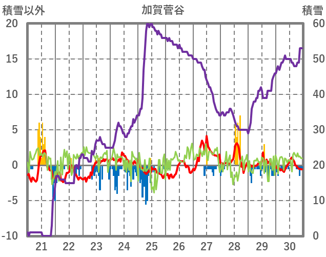 | 日 | 時 | 気温 | 降水 | 風向/風速 | 日照 | 積雪 | 降雪 |