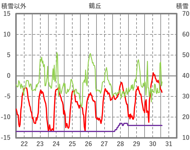 | 日 | 時 | 気温 | 降水 | 風向/風速 | 日照 | 積雪 | 降雪 |