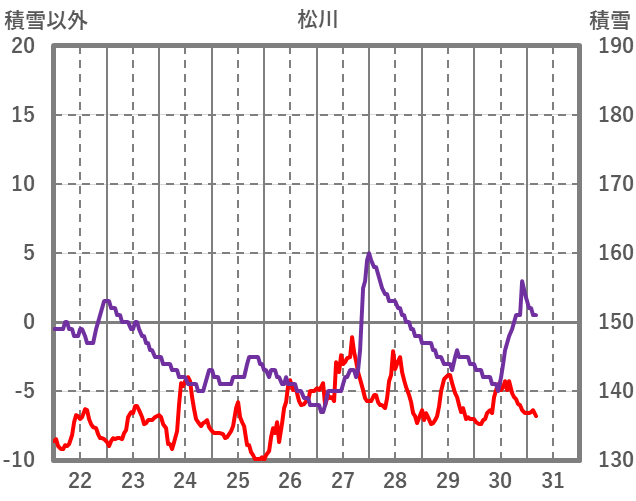 | 日 | 時 | 気温 | 降水 | 風向/風速 | 日照 | 積雪 | 降雪 |