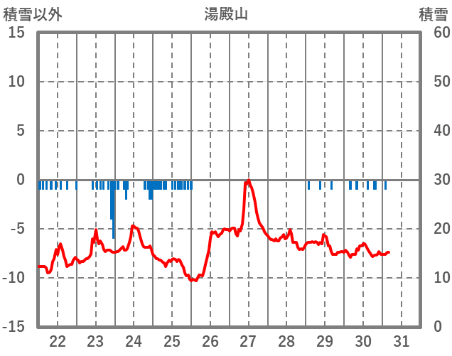 | 日 | 時 | 気温 | 降水 | 風向/風速 | 日照 | 積雪 | 降雪 |
