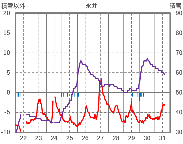 | 日 | 時 | 気温 | 降水 | 風向/風速 | 日照 | 積雪 | 降雪 |