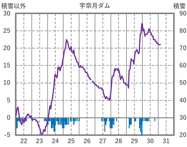 | 日 | 時 | 気温 | 降水 | 風向/風速 | 日照 | 積雪 | 降雪 |