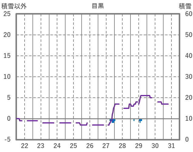 | 日 | 時 | 気温 | 降水 | 風向/風速 | 日照 | 積雪 | 降雪 |