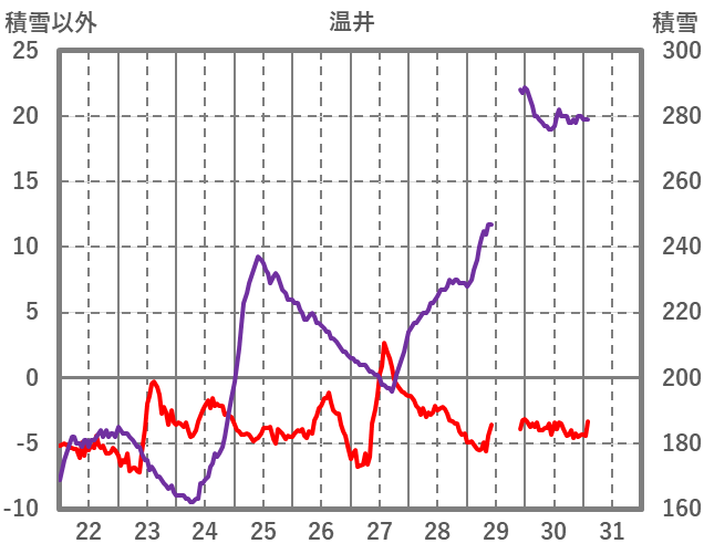 | 日 | 時 | 気温 | 降水 | 風向/風速 | 日照 | 積雪 | 降雪 |