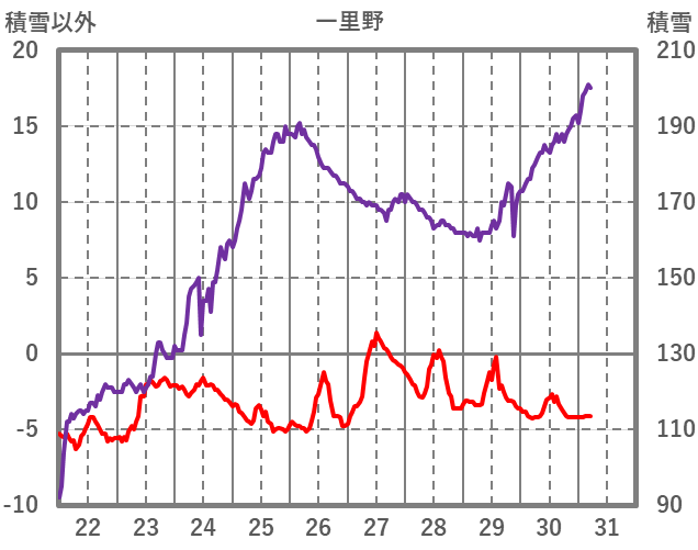 | 日 | 時 | 気温 | 降水 | 風向/風速 | 日照 | 積雪 | 降雪 |