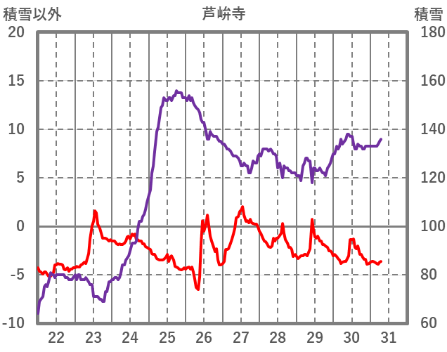| 日 | 時 | 気温 | 降水 | 風向/風速 | 日照 | 積雪 | 降雪 |