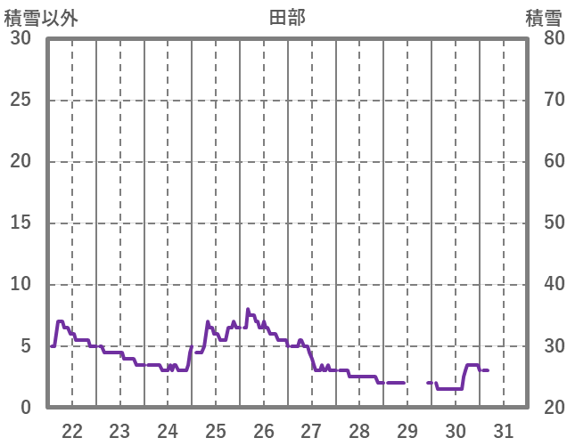 | 日 | 時 | 気温 | 降水 | 風向/風速 | 日照 | 積雪 | 降雪 |