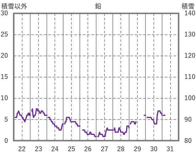 | 日 | 時 | 気温 | 降水 | 風向/風速 | 日照 | 積雪 | 降雪 |