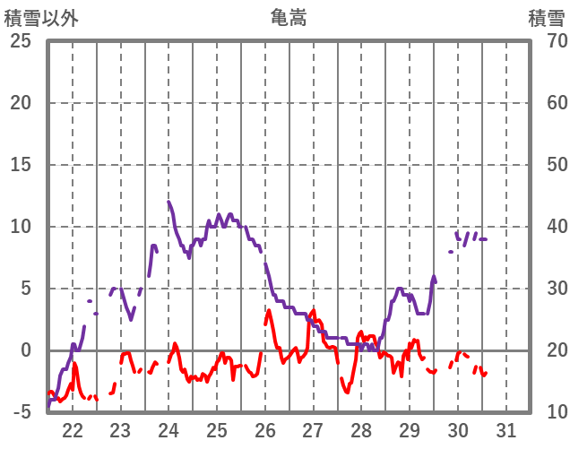 | 日 | 時 | 気温 | 降水 | 風向/風速 | 日照 | 積雪 | 降雪 |