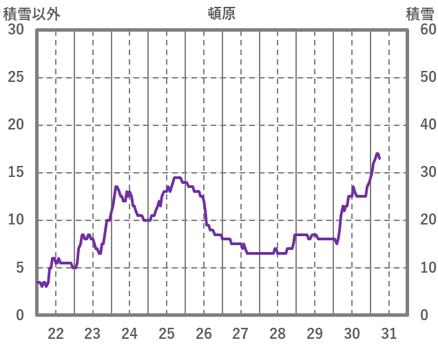 | 日 | 時 | 気温 | 降水 | 風向/風速 | 日照 | 積雪 | 降雪 |