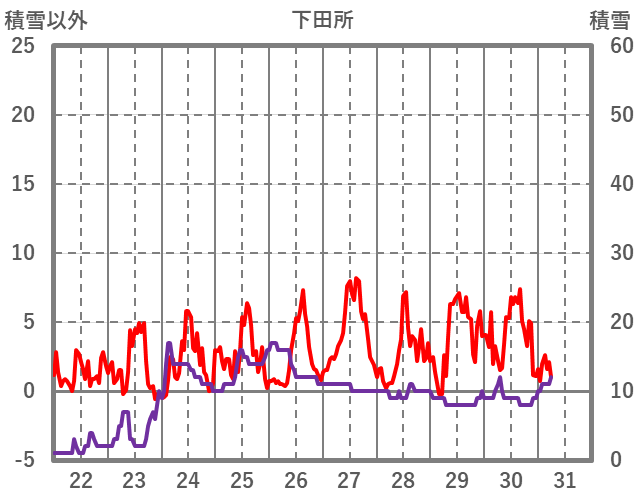 | 日 | 時 | 気温 | 降水 | 風向/風速 | 日照 | 積雪 | 降雪 |