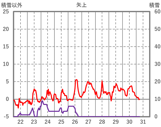 | 日 | 時 | 気温 | 降水 | 風向/風速 | 日照 | 積雪 | 降雪 |
