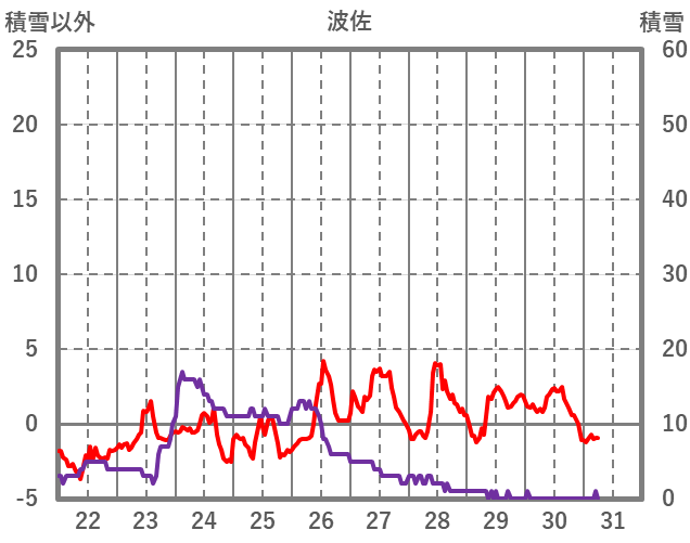 | 日 | 時 | 気温 | 降水 | 風向/風速 | 日照 | 積雪 | 降雪 |