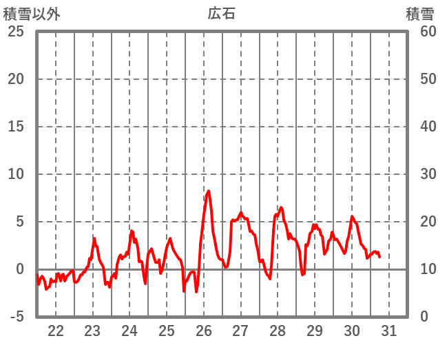 | 日 | 時 | 気温 | 降水 | 風向/風速 | 日照 | 積雪 | 降雪 |