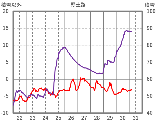| 日 | 時 | 気温 | 降水 | 風向/風速 | 日照 | 積雪 | 降雪 |