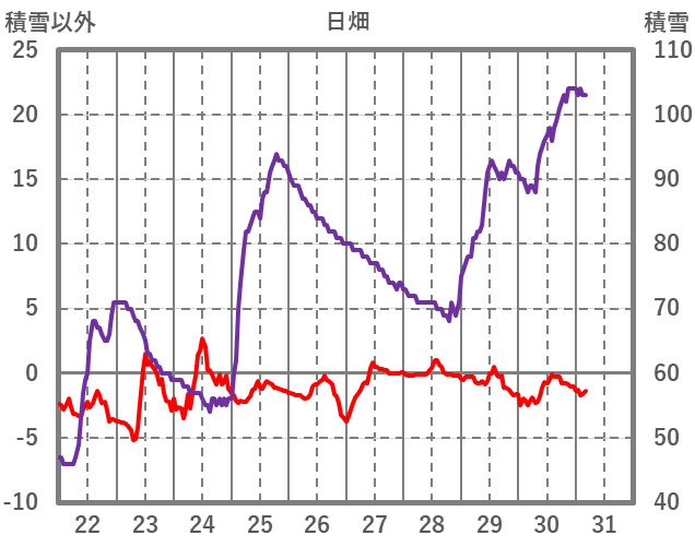 | 日 | 時 | 気温 | 降水 | 風向/風速 | 日照 | 積雪 | 降雪 |