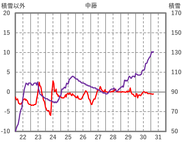 | 日 | 時 | 気温 | 降水 | 風向/風速 | 日照 | 積雪 | 降雪 |