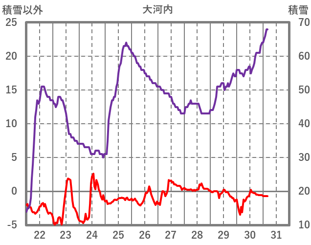 | 日 | 時 | 気温 | 降水 | 風向/風速 | 日照 | 積雪 | 降雪 |