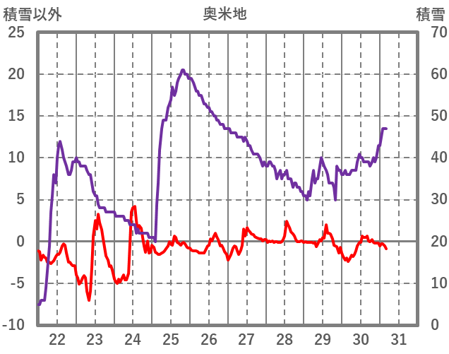 | 日 | 時 | 気温 | 降水 | 風向/風速 | 日照 | 積雪 | 降雪 |