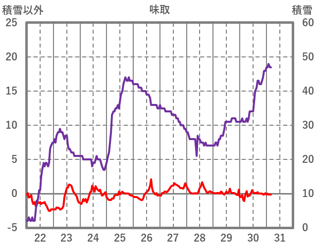 | 日 | 時 | 気温 | 降水 | 風向/風速 | 日照 | 積雪 | 降雪 |