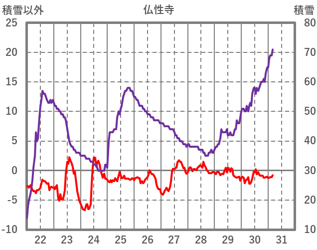| 日 | 時 | 気温 | 降水 | 風向/風速 | 日照 | 積雪 | 降雪 |