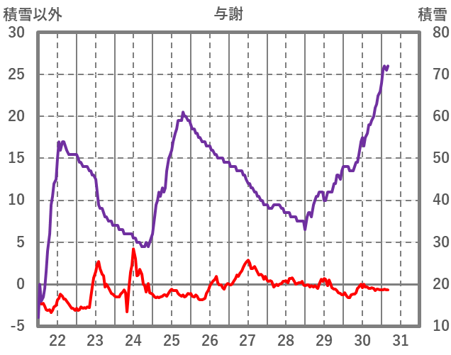 | 日 | 時 | 気温 | 降水 | 風向/風速 | 日照 | 積雪 | 降雪 |