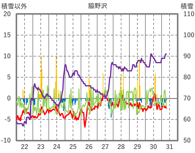 | 日 | 時 | 気温 | 降水 | 風向/風速 | 日照 | 積雪 | 降雪 |