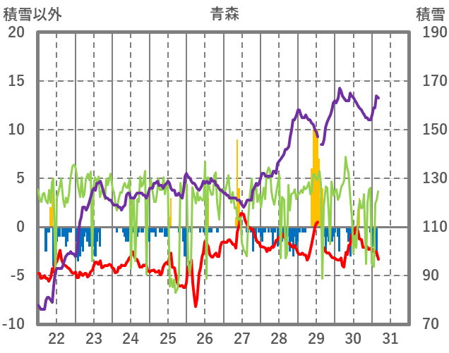 | 日 | 時 | 気温 | 降水 | 風向/風速 | 日照 | 積雪 | 降雪 |