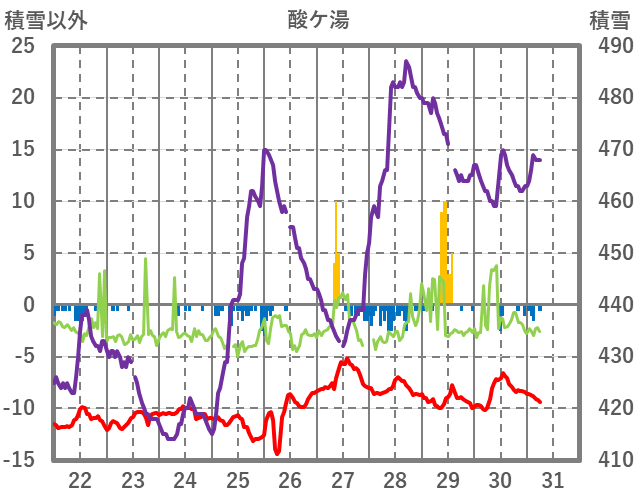 | 日 | 時 | 気温 | 降水 | 風向/風速 | 日照 | 積雪 | 降雪 |