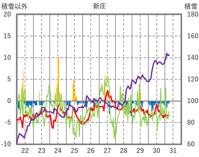 | 日 | 時 | 気温 | 降水 | 風向/風速 | 日照 | 積雪 | 降雪 |