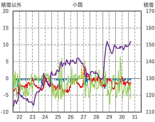 | 日 | 時 | 気温 | 降水 | 風向/風速 | 日照 | 積雪 | 降雪 |