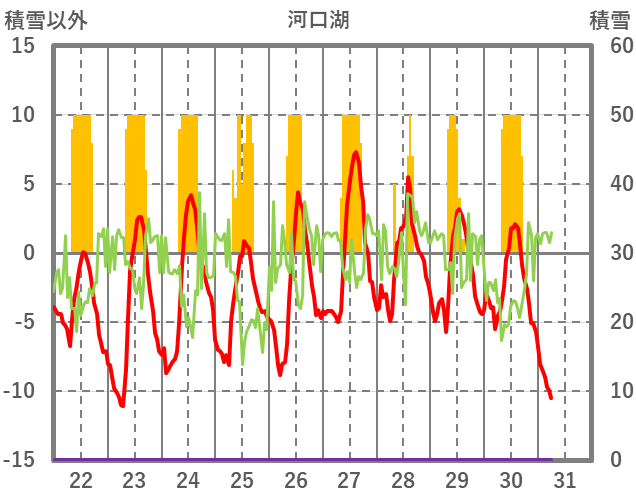 | 日 | 時 | 気温 | 降水 | 風向/風速 | 日照 | 積雪 | 降雪 |