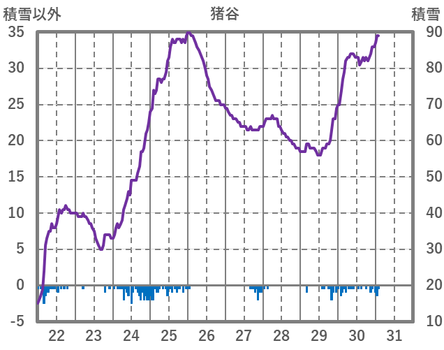 | 日 | 時 | 気温 | 降水 | 風向/風速 | 日照 | 積雪 | 降雪 |
