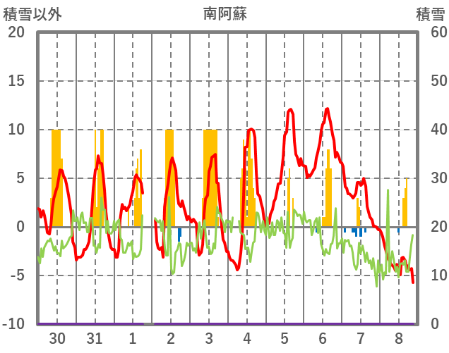 | 日 | 時 | 気温 | 降水 | 風向/風速 | 日照 | 積雪 | 降雪 |