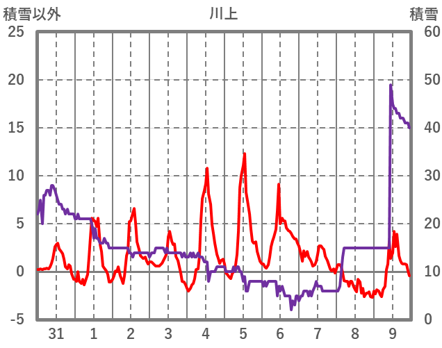 | 日 | 時 | 気温 | 降水 | 風向/風速 | 日照 | 積雪 | 降雪 |